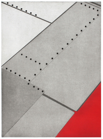In spring of 2013, I was a Prensky Island Press Visiting Artist at the Sam Fox School of Art, Washington University, St. Louis. Working with master printer Tom Reed, Island Press director Lisa Buwalsky, and a team of dedicated student assistants, we produced a series of etchings based on images from Seat Assignment from the Window Seat Suprematism group.